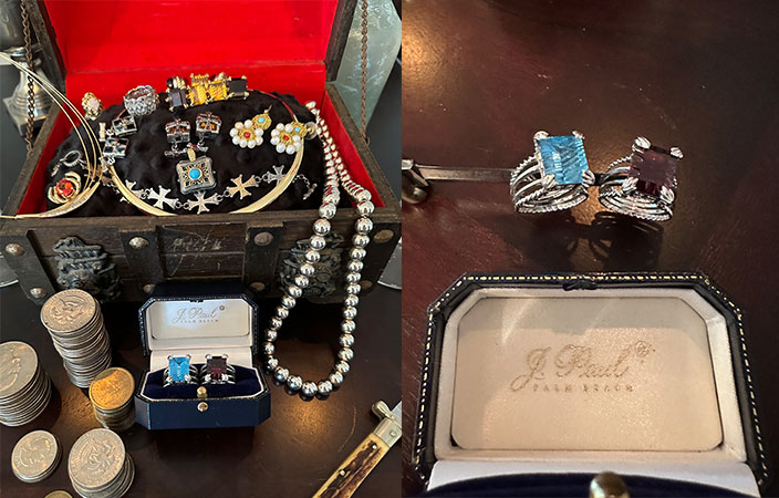 men’s cufflinks and silver dollars! All of the pieces are real gold, silver and some include beautifully cut precious gem stones.